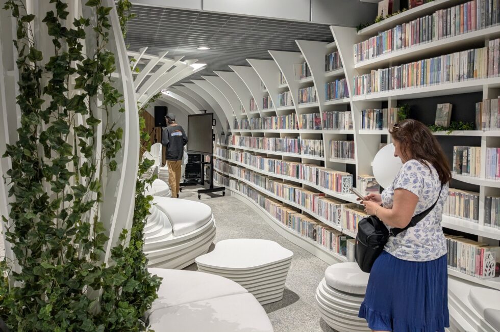 The 150 square metre space has separate sections for adult and children’s books, as well as board games, and also features a special quiet zone in which people can study or work in peace. To borrow a book, you just need to have a valid city library card. The process is simple and quick, designed for the convenience of busy travelers. You can grab a book on your way to work and return it on your way back.